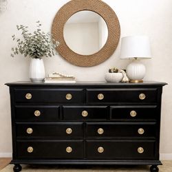 Bassett 7 drawer dresser refinished in tony taupe and natural wood stain on top.$825Hutto, TX