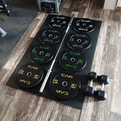 New Olympic Bumper Set With Barbell & Dumbbells $400Kyle, TX
