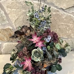 White Vase with Burgundy, Blue and Green Flowers $40Round Rock, TX