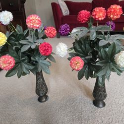 Pair of Engraved Brass Vases with Faux Colorful Dahlia Flowers (Set of 2)$8Leander, TX
