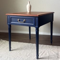 Henredon Solid Wood Side Table – Navy Blue & Wood – $195$195Austin, TX