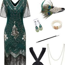 Womens Plus Green and Gold Flapper Dress$30Webberville, TX