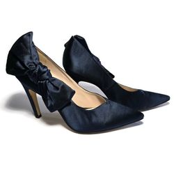 Nine West Blue Satin Oversized Bow Pumps Stilettos Heels Sz 8.5 Pointed $30Manor, TX
