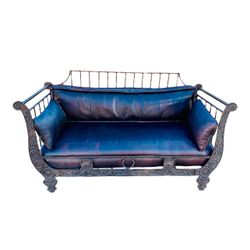 2000s Thomasville Ernest Hemingway El Toro Corrida Metal From the Kenya Collection Leather Loveseat$800Pflugerville, TX