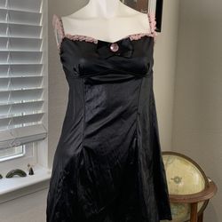 Y2K Dreamgirl Faux Leather Playboy Black Mini Dress w Pink Lace Trim Size L$15Kyle, TX