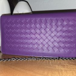Authentic Bottega Veneta intrecciato woven leather wallet on chain in a rich purple with gunmetal hardware$450Austin, TX
