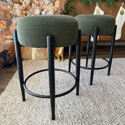 Bar Stools Set of 2, 24" Counter Height Stools with Round Soft Padded Backless Seat and Metal Mid-Century Base, Green$50Austin, TX