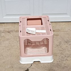 Wisfor Foldable Top Entry Covered Cat Litter Box, Pink, Large