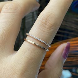 Rose gold double lines CZ Open Ring,Silver Adjustable Ring,Silver Link Open Ring$15Austin, TX