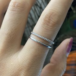 White gold double lines CZ Open Ring,Silver Adjustable Ring,Silver Link Open Ring$15Austin, TX