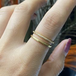 gold double lines CZ Open Ring,Silver Adjustable Ring,Silver Link Open Ring$15Austin, TX