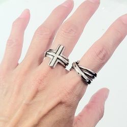 Set Two 2 925 Sterling Silver Cross Cuff Ring Band Gift$18Austin, TX