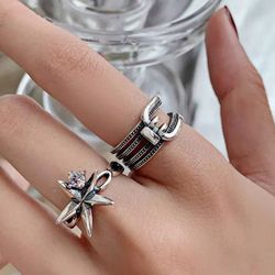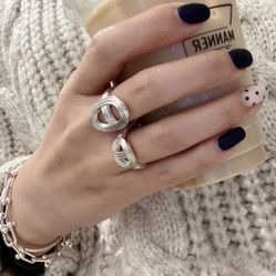 Set Of Two 925 Sterling Silver Women's Cuff Ring Band Adjustable Size Gift Rings $18Austin, TX