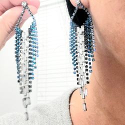 Black white blue stones Rhinestones drop earrings Gift$14Austin, TX
