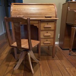 Circa 1950 Small Roll-Top Desk & Chair, All Original Pulls & Hardware$285Austin, TX