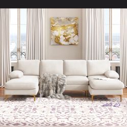 Chenille - U-Shaped 4-Seat Sectional Sofa – Creamy White$350Austin, TX