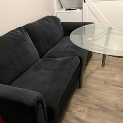 Dark Blue Couch And Round Glass Table $100Austin, TX