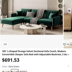 105" L-Shaped Green Velvet Sectional Sofa Couch$550Austin, TX