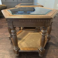 Two Classic Quality Wood End Tables With Glass Top For Sale $35Austin, TX