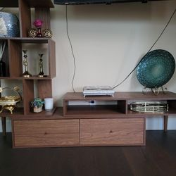 2 wooden shelves with center tv stand$400Austin, TX