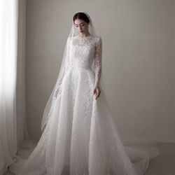 Soft Ivory Modest Wedding Dress + Veil – Long Sleeve Lace Bridal Gown (Made to Order) $1,300Kyle, TX