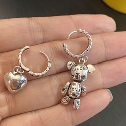925 Silver Heart Bear Hoop Earrings $23Austin, TX
