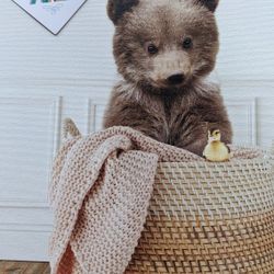 NEW - Kate and Laurel Sylvie Beaded Bear Cub In Laundry Basket Wall Art $50Austin, TX