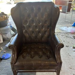 Vintage style brown leather tufted wingback chair$300Round Rock, TX