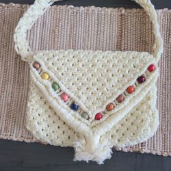 Macrame Beaded Purse W Handle Ivory Color 12"W X 9"T$22Pflugerville, TX