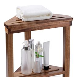 Shower Foot Rest 14in, Acacia Wood Shower Stool for Shaving Legs, Waterproof Corner Shower Stool with Storage Shelf for Inside Small Shower Spaces, Wo$15Houston, TX
