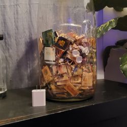 Antique vintage Mason Jug 4 gallons full of 1970s match boxes houston$150Houston, TX