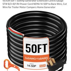 VEVOR 50FT 50Amp Generator Extension Cord 6 Gauge STW 6/3+8/1 RV$145Houston, TX
