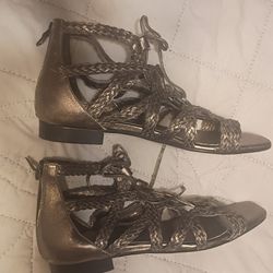 Sesto Meucci Italy Metallic Braided Gladiator Sandals Lace Up Bronze size 9.5$25Houston, TX