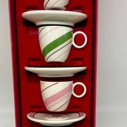 STARBUCKS!!!!Set Of 4 Peppermint Swirl Tea Cup And Saucer Set$25League City, TX