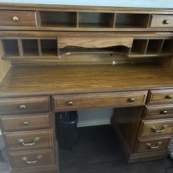 Antique Roll Top Wooden desk With light$55Old Rvr-wnfre, TX