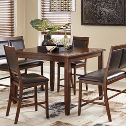 Hazelteen Medium Brown Counter Height Dining Table and Bar Stools (Set of 5) $409Houston, TX
