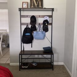 Back pack rack with bench and shoe rack at the bottom.$100Houston, TX