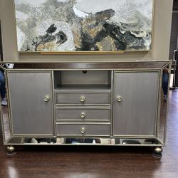 Media Console Or Contemporary Metallic Platinum Mirrored Accent Cabinet!$550Houston, TX