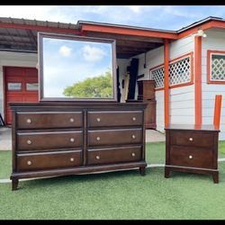 Dresser Mirror, Two Nightstands And Chest tallboy$600Houston, TX