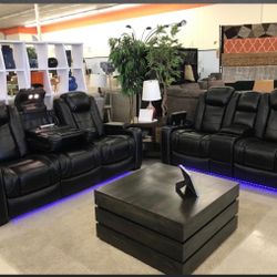 Party Time Midnight LED Power Reclining Living Room Set with Adjustable Headrest /Couch / Sofa and Loveseat $2,599Houston, TX