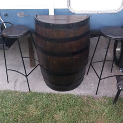 Half Whiskey Barrel Table And Two Bar Stools 175$175San Leon, TX