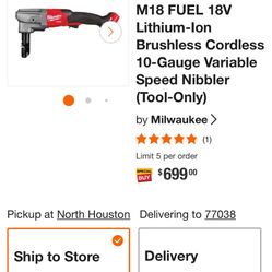 M18 FUEL 18V Lithium-Ion Brushless Cordless 10-Gauge Variable Speed Nibbler (Tool-Only)$500Houston, TX
