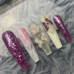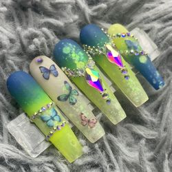 Extra long coffin press on nails rhinestones,glitter ,ombré, butterflies$40Vidor, TX