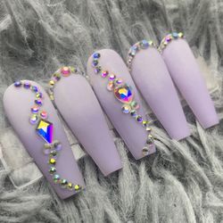 long coffin purple press on nails rhinestones, ombré$25Vidor, TX