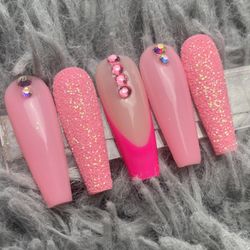 long coffin press on nails rhinestones, glitter , French tips$25Vidor, TX