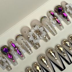 Long coffin press on nails rhinestones,acrylic flowers,glitter$35Vidor, TX