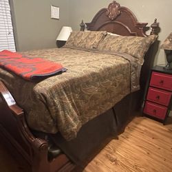 Queen bed w/mattress, side table, comforter set.$200Port Neches, TX