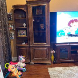 Solid Wood And Glass Showcase Entertainment Center$500Beaumont, TX