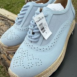 Torrid Perforated Lace Up Espadrille Oxford Comfort Flat Blue Women's Size 7$35Winnie, TX