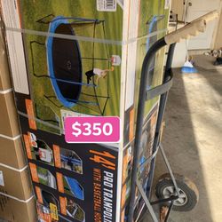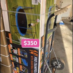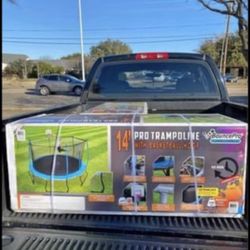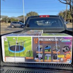 New 14ft Trampoline With Enclosure And Basketball Hoop Plus Ball And Pump $380Old Rvr-wnfre, TX